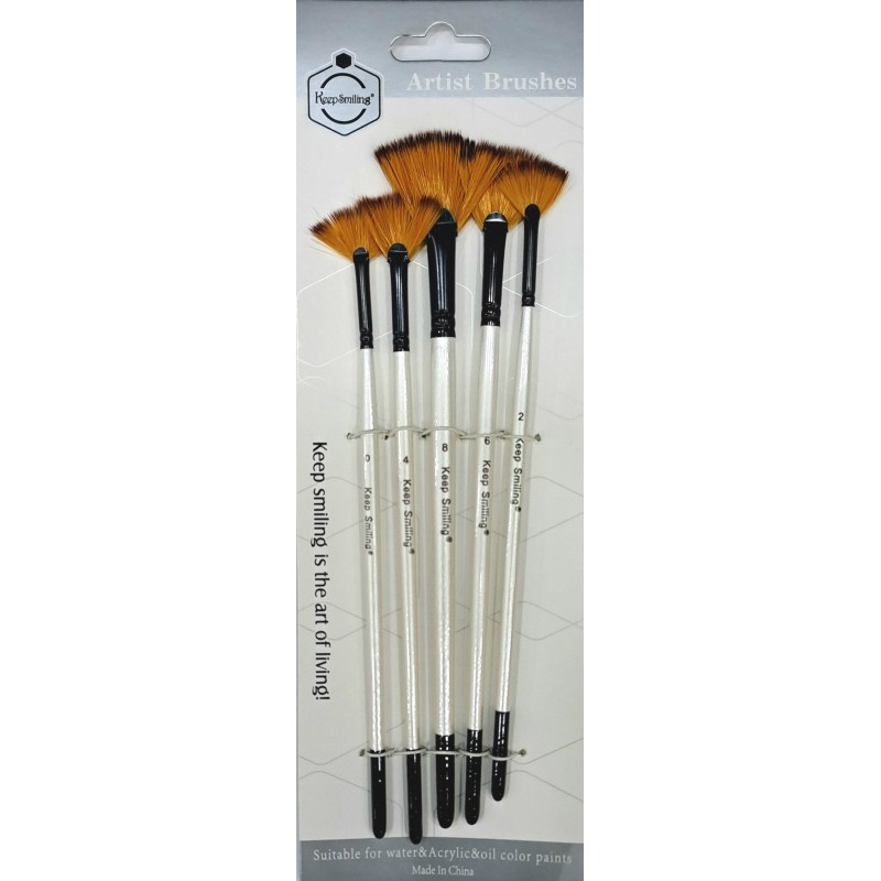 طقم متخصص يحتوي على 5 فرش رسم برأس مروحي (Fan Brushes) بمقاسات مختلفة.
