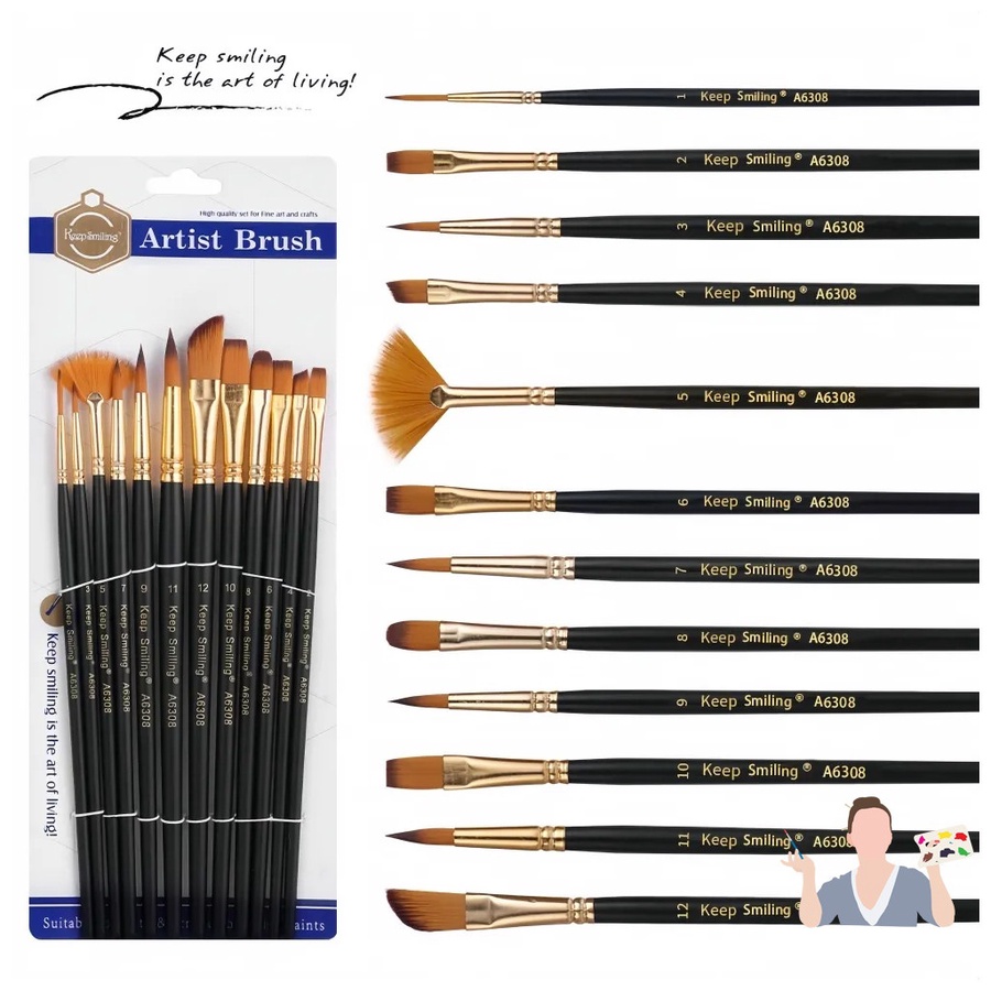 يحتوي الطقم على 12 فرشاة بمقابض خشبية سوداء أنيقة وحلقات ذهبية، وتشكيلة رؤوس فريدة تغطي كل التقنيات: