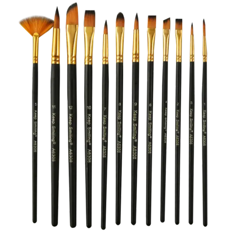 - فرش دائرية (Round): للتفاصيل. الشعيرات الذهبية الصناعية تتميز بمرونة عالية وسهولة في التنظيف، وهي مصممة للعمل بكفاءة مع ألوان الزيت، الأكريليك، والألوان المائية.