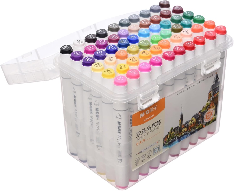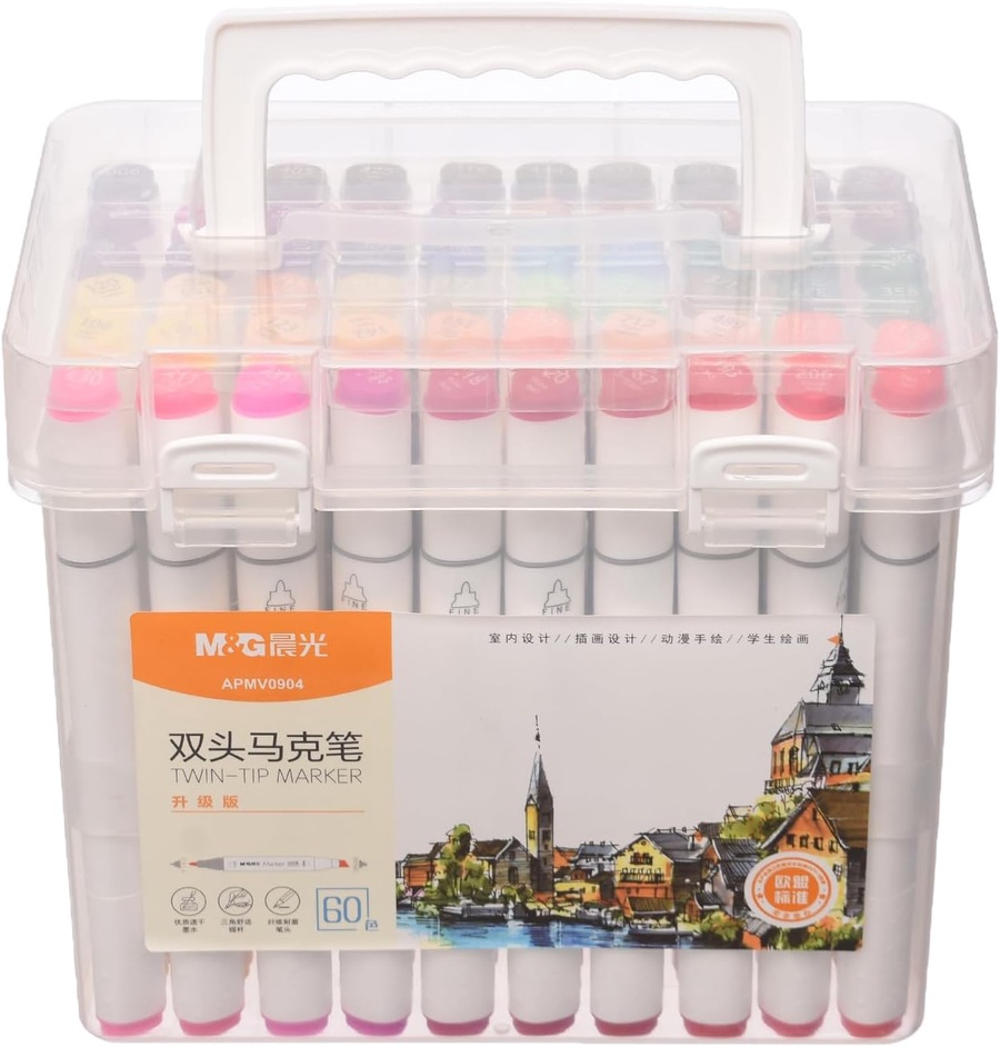 طقم أقلام ماركر مزدوجة من M&G مخصص للرسم الفني، التصميم، والاسكتشات المعمارية. المواصفات الفنية: