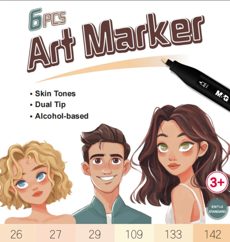 طقم أقلام ماركر من M&G مخصص لدرجات البشرة الطبيعية (Skin Tones). المواصفات الفنية: