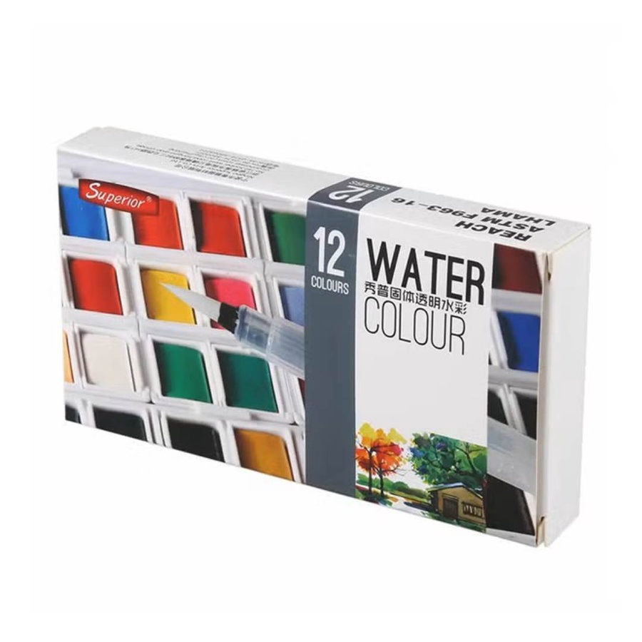 طقم ألوان مائية 12 لون أكوريل سبريور شفاف